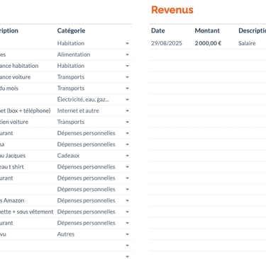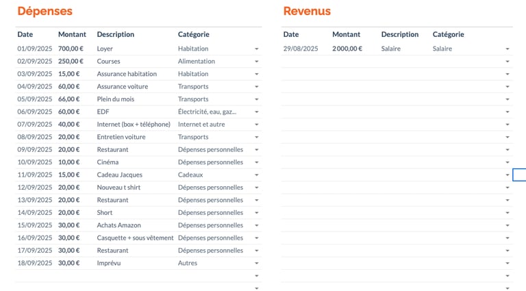 Ici, on va retrouver les sorties (restaurant, cinéma,...), mais également les achats (habits, cadeaux) et les imprévus.